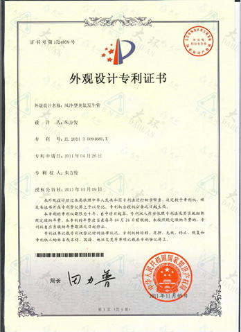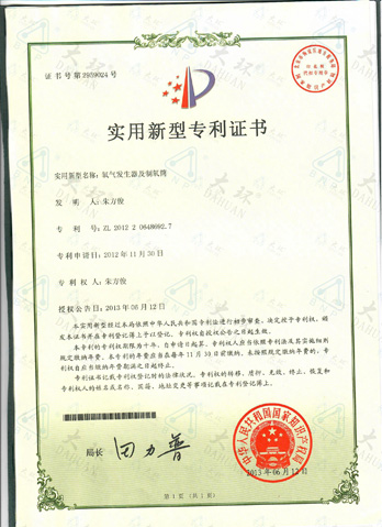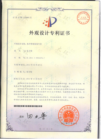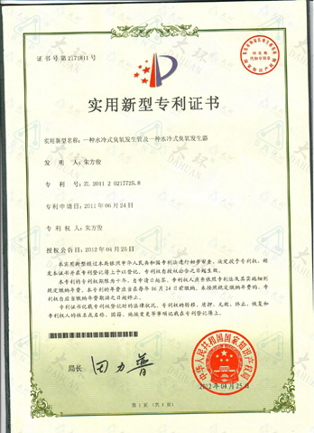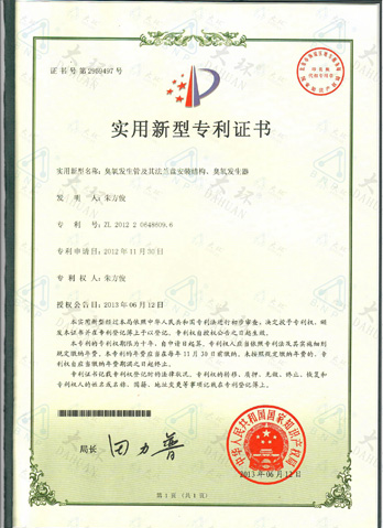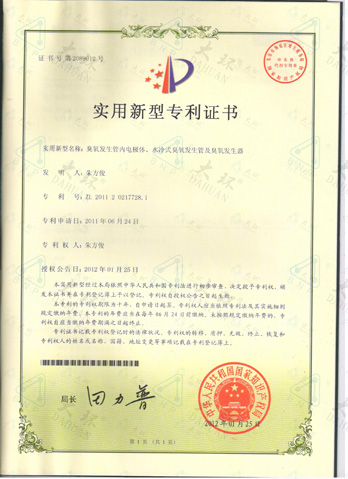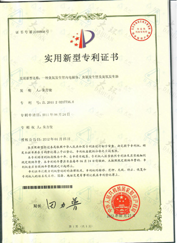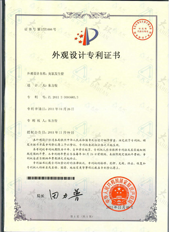 大環臭氧管專利證書